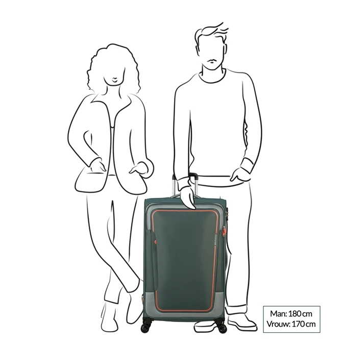 Deze zachte koffer van American Tourister is gemaakt van polyester. Een voordelig materiaal binnen de zachte koffers. Een prima materiaal voor de niet frequentie reiziger waarbij budget een belangrijke factor is. Stel je hoge(re) eisen aan het materiaal, dan adviseren wij een zachte koffer van polyamide of nylon.