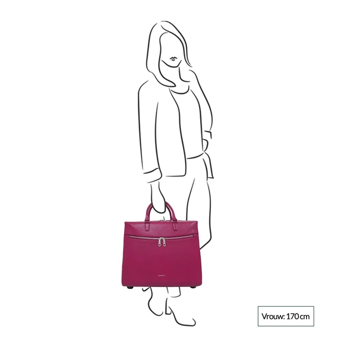 DeRomance Lady Business Trolley 15.6″ van Gigi Fratelli. Deze trolley is gemaakt van leer. Het hoofdvak sluit door middel van een dubbele ritssluiting. Het interieur is voorzien van een 15.6” laptopvak, diverse insteekvakken, een ritsvak, telefoonvak, drie creditcardvakken, pennenhouders en een sleutelclip. Ook is er meer dan voldoende ruimte voor A4-formaat documenten.
