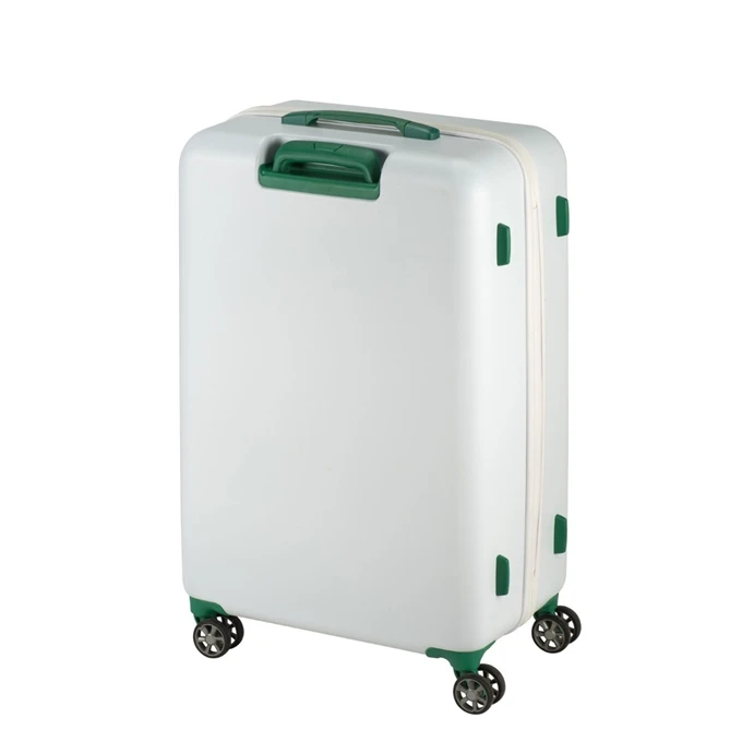 Is deze Princess Traveller I’m Green jouw nieuwe koffer? Deze koffer is groot genoeg om al jouw bagage in op te bergen. Op de luchthaven check je de koffer veilig in zodat deze op je eindbestemming weer netjes van de bagageband af rolt. Op deze harde koffer van Princess Traveller wordt 2 jaar garantie gegeven. Het materiaal van de koffer is gerecycled materiaal en in de koffer kun je 88 liter kwijt. Deze Princess Traveller koffer is voorzien van 4 wielen en wordt daarom ook wel een spinner koffer genoemd. Ten opzichte van een koffer met 2 wielen is een spinner koffer wendbaarder en kun je deze rechtop laten staan tijdens het vervoeren.
