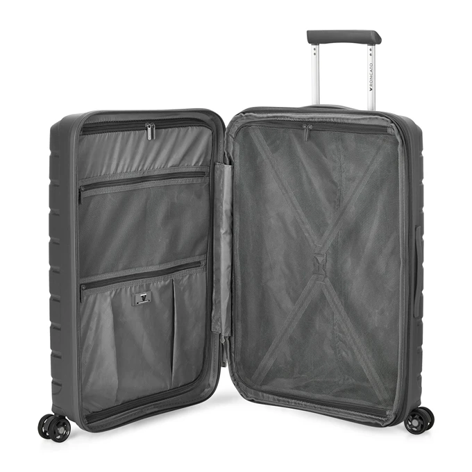 Polypropyleen is oersterk, maar niet het allerlichtste materiaal. Vind je stevigheid belangrijker dan het gewicht en worden lichtere materialen zoals polycarbonaat en Curv te prijzig? Deze Roncato koffer is dan een uitstekende keuze.