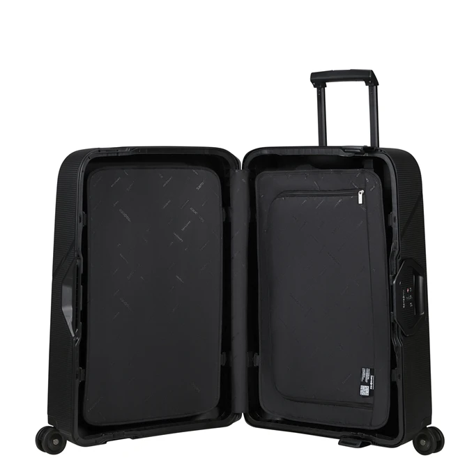 Met de Magnum ECO collectie heeft Samsonite een serie op de markt gebracht die symbool staat voor het streven naar duurzaamheid met behoudt van de sterke kwaliteit. Deze Samsonite Magnum ECO Spinner 69 is op een innovatieve en duurzame manier gemaakt in Europa. De buitenkant is gemaakt van 371 gerecyclede yogurtpotjes en de binnenkant gemaakt van 10 gerecyclede petflessen. Deze innovatieve manier van produceren heeft ervoor gezorgd dat deze Magnum ECO Spinner een licht, sterk en bovendien een duurzaam product is.